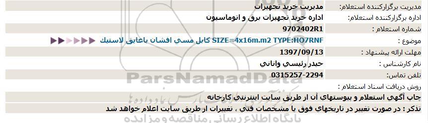 موضوع : کابل مسی افشان با عایق لاستیک SIZE=4x16m.m2 TYPE:HO7RNF