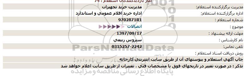 اداره برگزارکننده استعلام:  اداره خرید اقلام عمومی و استاندارد