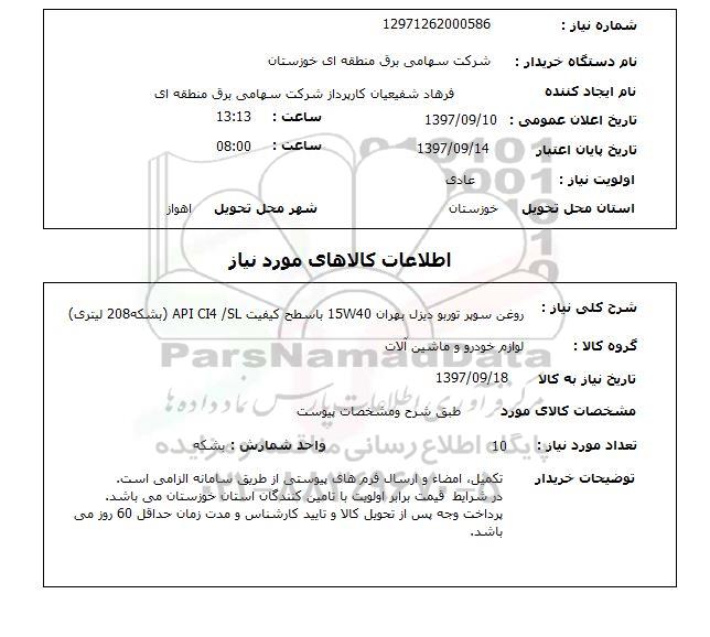 نام دستگاه خریدار    شرکت سهامی برق منطقه ای خوزستان