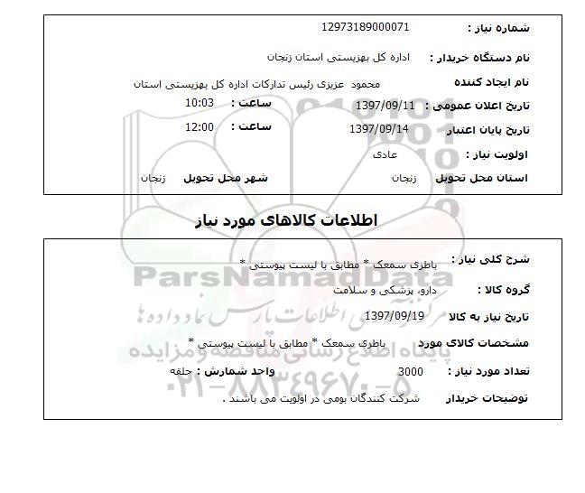 شرح کلی نیاز: باطری سمعک مطابق با لیست پیوستی