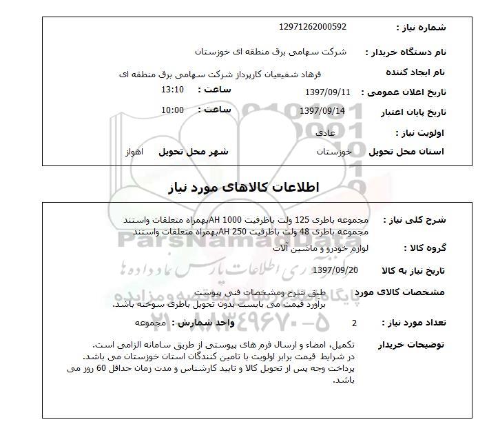 نام دستگاه خریدار: شرکت سهامی برق منطقه ای خوزستان