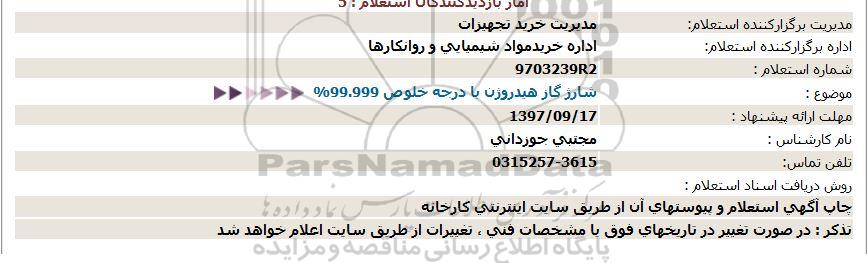 اداره برگزارکننده استعلام: اداره خرید مواد شیمیایی و روانکارها