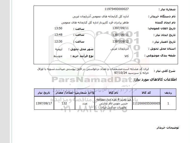نام دستگاه خریدار : اداره کل کتابخانه های عمومی آذربایجان غربی