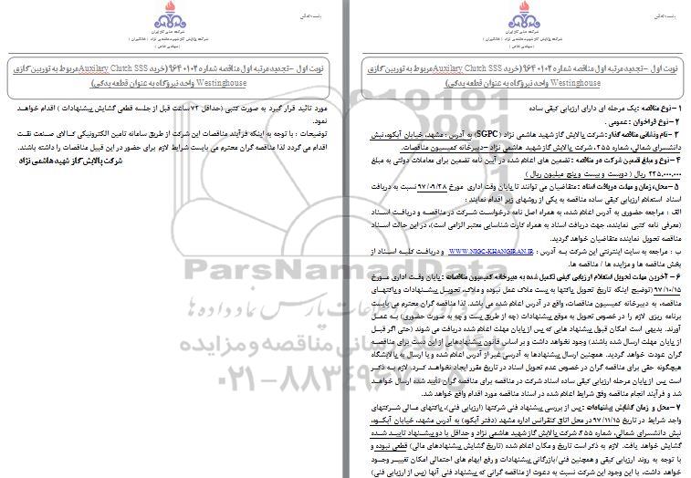 تجدید مناقصه خرید Auxilary Clutch SSS مربوط به توربین گازی - نوبت دوم از کلیه افراد متخصص و شرکتها واجد شرایط دعوت به عمل میآید در مناقصه با کد خبرگزاری پارس نماد: 1401900 شرکت نمایند.