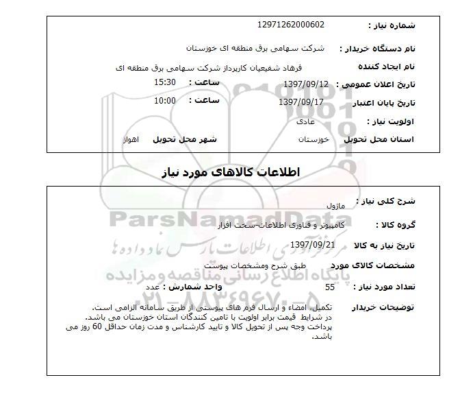 نام دستگاه خریدار : شرکت سهامی برق منطقه ای خوزستان