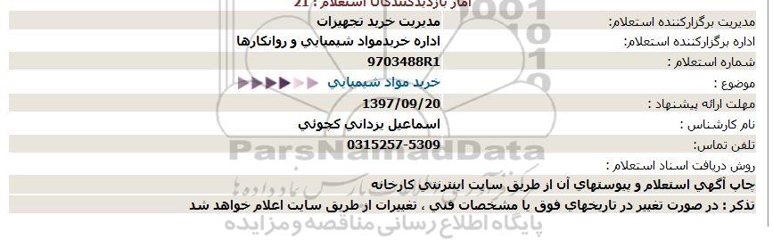 استعلام خرید مواد شیمیایی , استعلام خرید مواد شیمیایی