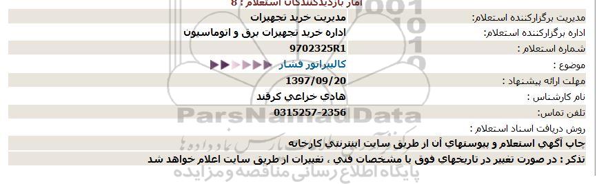اداره برگزارکننده استعلام: اداره خرید تجهیزات برق و اتوماسیون