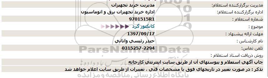 اداره برگزارکننده استعلام: اداره خرید تجهیزات برق و اتوماسیون
