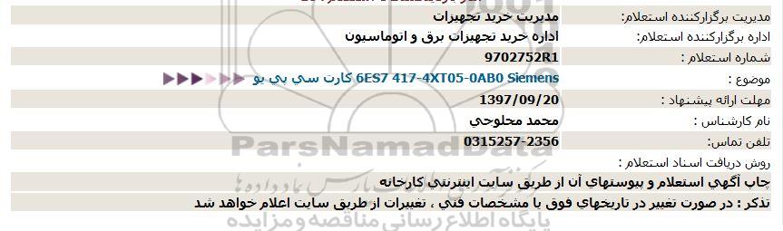موضوع : کارت سی پی یو 6esy 417-4xto5-oabo siemens