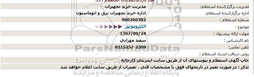 اداره برگزارکننده استعلام: اداره خرید تجهیزات برق و اتوماسیون