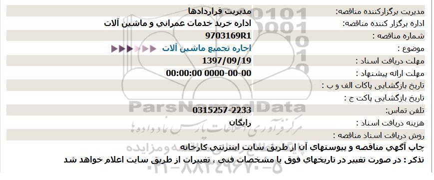 مناقصه اجاره تجمیع ماشین آلات, مناقصه, مناقصه اجاره تجمیع ماشین آلات