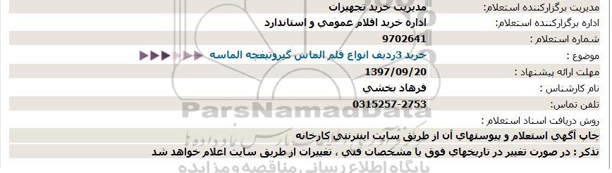 اداره برگزارکننده استعلام: اداره خرید اقلام عمومی و استاندارد