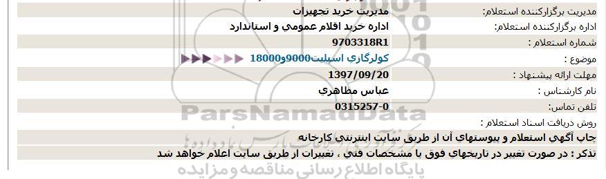 اداره برگزارکننده استعلام: اداره خرید اقلام عمومی و استاندارد