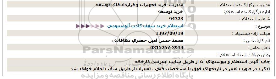 موضوع : استعلام خرید سقف کاذب آلومینیومی