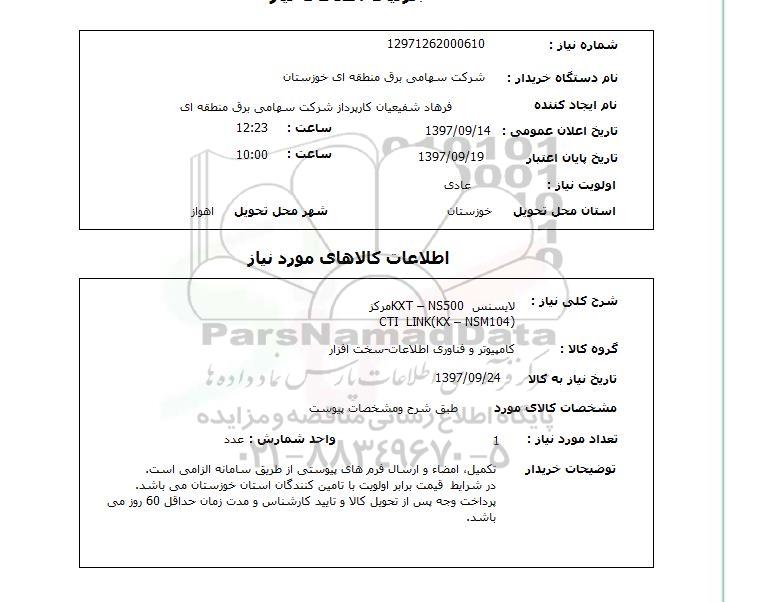 نام دستگاه خریدار:شرکت سهامی برق منطقه ای خوزستان