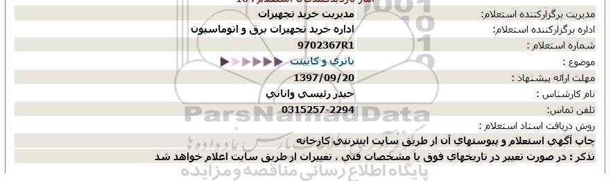 استعلام باتری و کابینت , استعلام ,استعلام باتری و کابینت