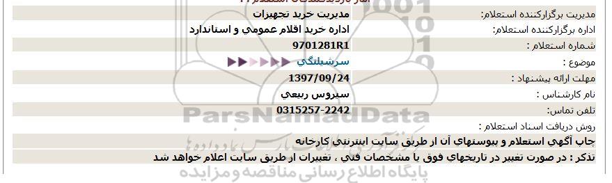 اداره برگزارکننده استعلام:     اداره خرید اقلام عمومی و استاندارد