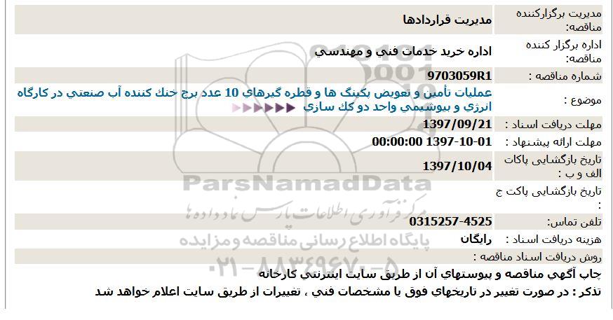 علاقه‌مندان می‌توانند جهت دریافت اسناد و اطلاعات تکمیلی، مناقصه عملیات تامین و تعویض پکینگ ها با سامانه مناقصات و مزایدات ایران پارس‌نماد داده ها 88349670 تماس حاصل نمایند.