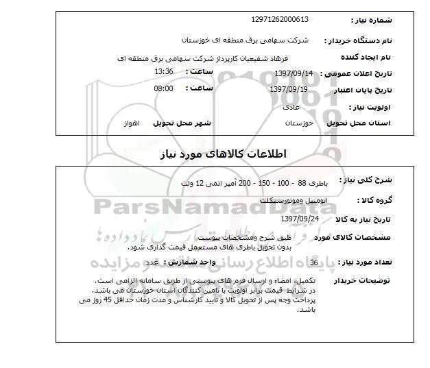 شرح کلی نیاز: باطری 88-100-150-200 آمپر اتمی 12 ولت