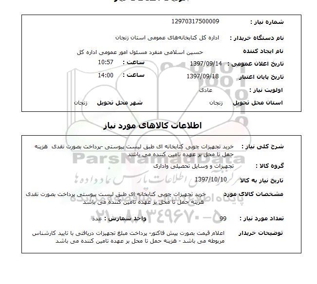 نام دستگاه خریدار:اداره کل کتابخانه های عمومی استان زنجان