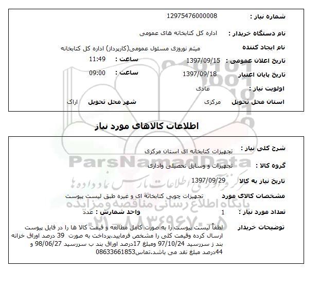 شرح کلی نیاز: تجهیزات کتابخانه ای استان مرکزی