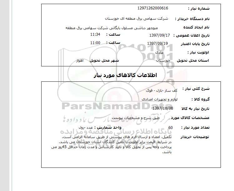 نام دستگاه خریدار    شرکت سهامی برق منطقه ای خوزستان