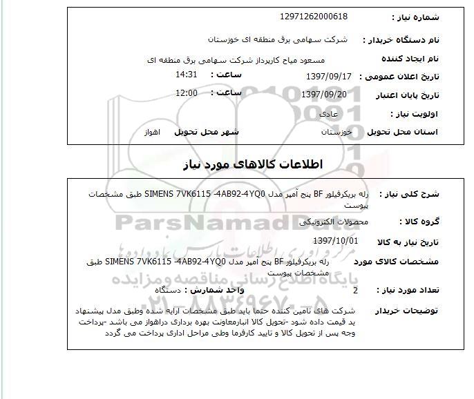 نام دستگاه خریدار : شرکت سهامی برق منطقه ای خوزستان