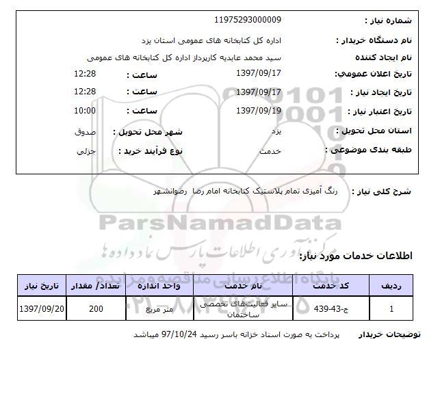 شرح کلی نیاز: رنگ آمیزی تمام پلاستیک کتابخانه امام رضا رضوانشهر