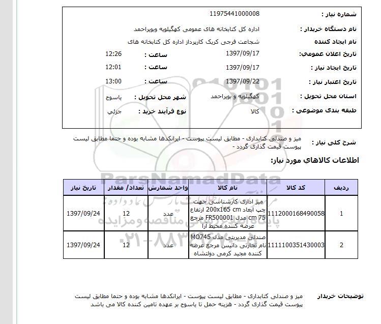 نام دستگاه خریدار: اداره کل کتابخانه های عمومی استان کهگیلویه و بویراحمد