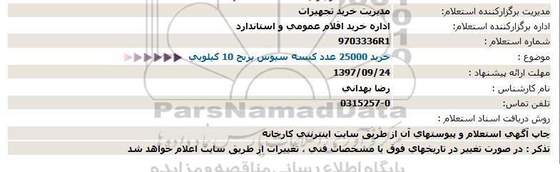 اداره برگزارکننده استعلام: اداره خرید اقلام عمومی و استاندارد