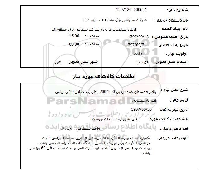 نام دستگاه خریدار شرکت سهامی برق منطقه ای خوزستان