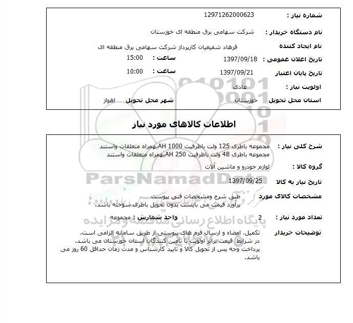 استعلام مجموعه باطری 125 ولت ..., استعلام, استعلام مجموعه باطری 125 ولت ...