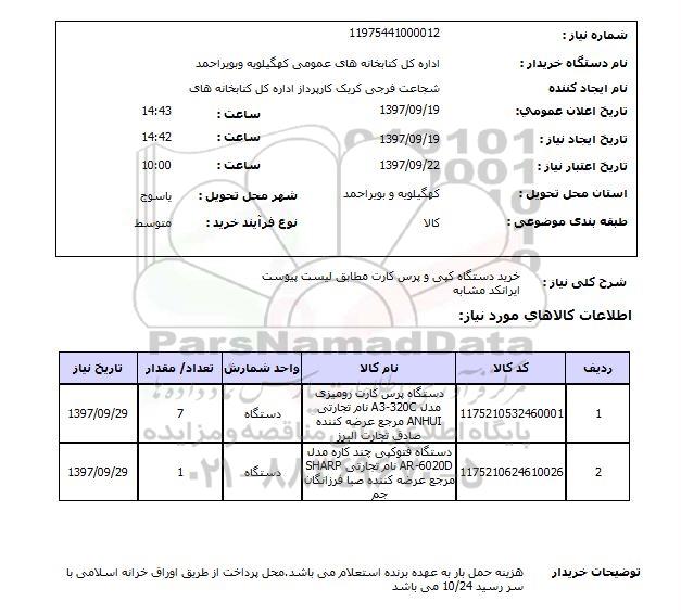 استعلام خرید دستگاه کپی و پرس کارت..., استعلام; استعلام خرید دستگاه کپی و پرس کارت...