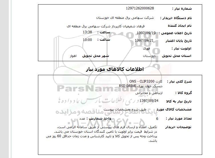نام دستگاه خریدار: شرکت سهامی برق منطقه ای خوزستان