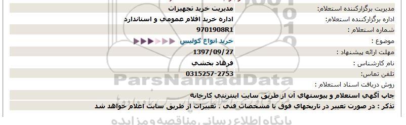 اداره برگزارکننده استعلام: اداره خرید اقلام عمومی و استاندارد