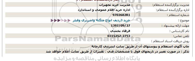 اداره برگزارکننده استعلام: اداره خرید اقلام عمومی و استاندارد