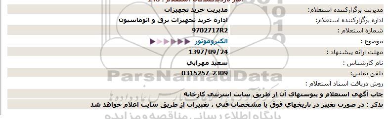 اداره برگزارکننده استعلام: اداره خرید تجهیزات برق و اتوماسیون