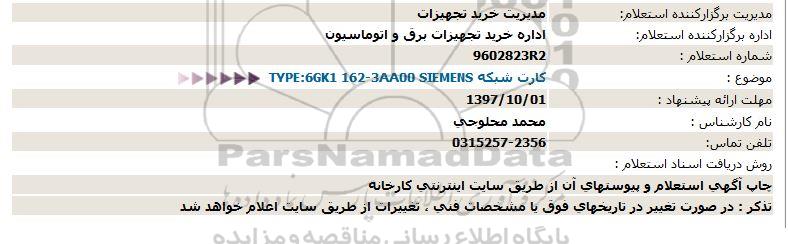 موضوع : کارت شبکه TYPE:6GK1 162-3AA00 SIEMENS