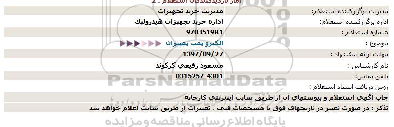 اداره برگزارکننده استعلام: اداره خرید تجهیزات هیدرولیک