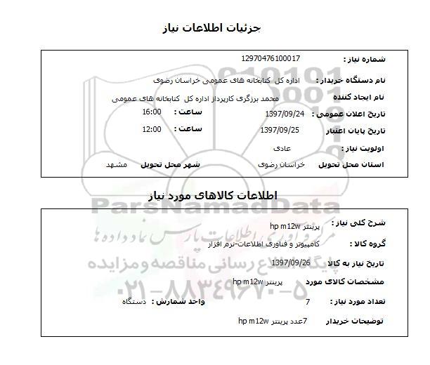 شرح کلی نیاز: پرینتر hp m12w