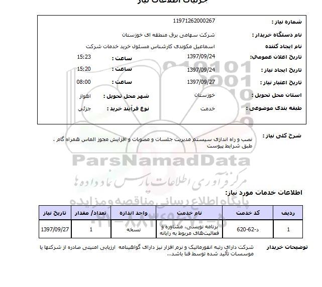 نام دستگاه خریدار: شرکت سهامی برق منطقه ای خوزستان