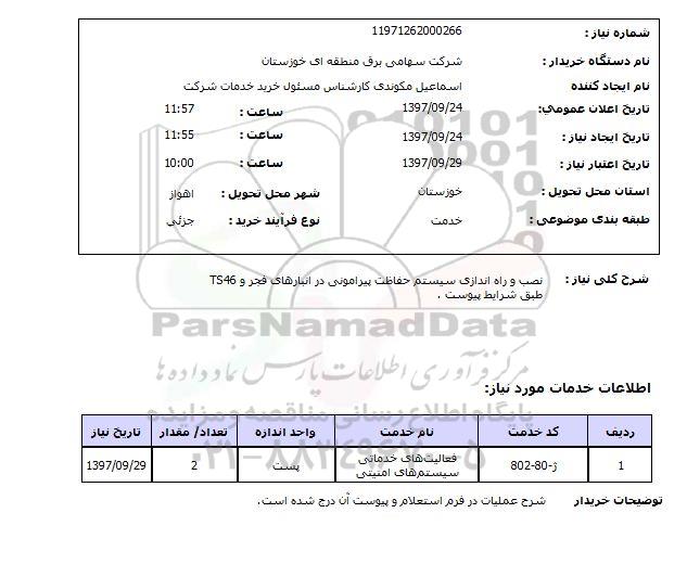 شرح کلی نیاز: نصب و راه اندازی سیستم حفاظت پیرامونی در انبارهای فجر و ts46 طبق شرایط پیوست