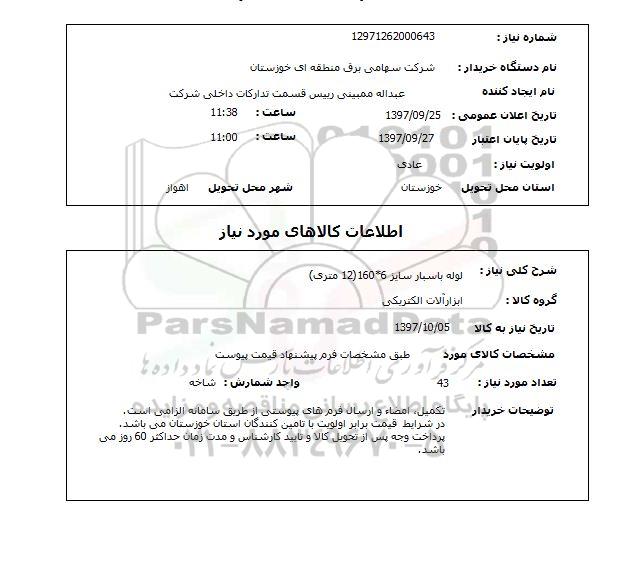 شرح کلی نیاز لوله باسبار سایز 6*160 12 متری