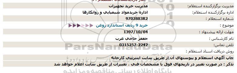 اداره برگزارکننده استعلام: اداره خرید مواد شیمیایی و روانکارها