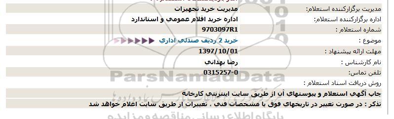 اداره برگزارکننده استعلام: اداره خرید اقلام عمومی و استاندارد