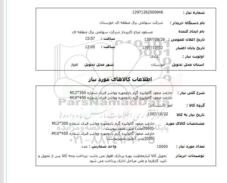نام دستگاه خریدار : شرکت سهامی برق منطقه ای خوزستان