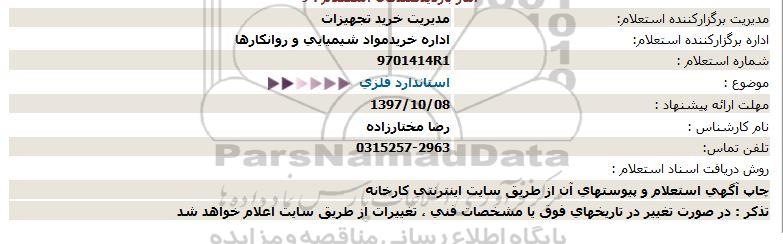 اداره برگزارکننده استعلام: اداره خرید مواد شیمیایی و روانکارها