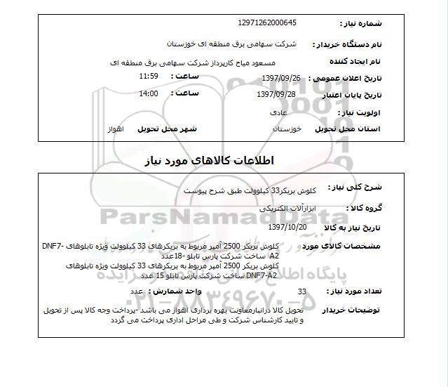 نام دستگاه خریدار: شرکت سهامی برق منطقه ای خوزستان