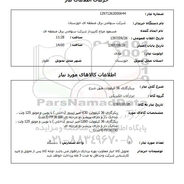 شرح کلی نیاز: بریکرگازی 36 کیلووات طبق شرح