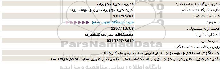 استعلام خرید دستگاه صوت سنج, استعلام خرید دستگاه صوت سنج